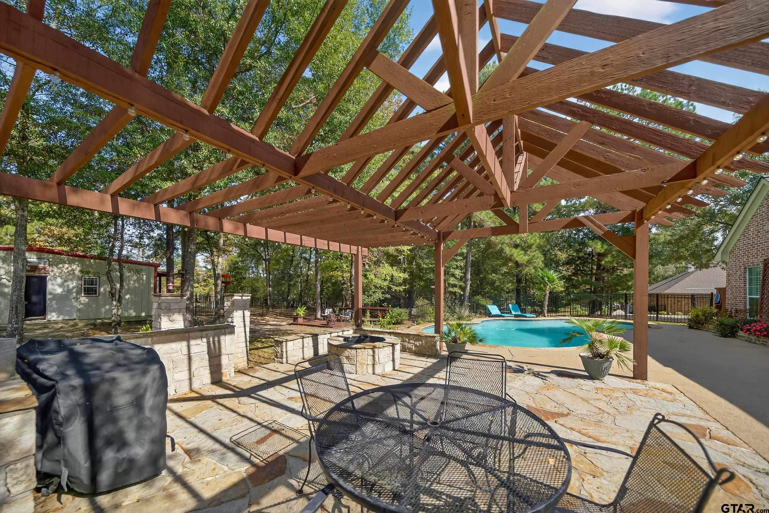 | Experience refined country living at its finest in this captivating 3-bedroom, 2.5-bath estate set on just over two acres in the distinguished Stallion Lake Ranch community. Thoughtfully designed for comfort, entertaining, and effortless elegance, this home welcomes you with its inviting curb appeal and a serene sitting area perfect for morning coffee or evening sunsets. Inside, the grand foyer opens to a sophisticated formal dining room and a private home office, ideal for modern living. The spacious open-concept layout showcases a stunning living area anchored by a cozy fireplace and bathed in natural light, flowing seamlessly into the chef’s kitchen. Here, every detail has been considered! The double ovens and breakfast bar to the warming drawer, walk-in pantry, and generous counter space designed for both culinary creativity and casual gatherings. The primary suite offers a private retreat with direct access to the backyard and a spa-inspired ensuite featuring dual vanities, a soaking tub, walk-in shower, and an expansive custom closet. Upstairs, a stylish media room with surround sound, built-in bar, sink, and half bath provides the perfect setting for movie nights or entertaining guests. Step outside to your personal oasis, where a covered patio overlooks a sparkling pool, fire pit, and outdoor shower with dressing area surrounded by lush landscaping and open skies. The property also includes a 30x36 workshop with water and electricity, an attached greenhouse, a storage shed, and a charming cabin. This cabin is versatile offering a space for hobbies, guests, or studio. Situated near a peaceful pond and surrounded by natural beauty, this home embodies a lifestyle of relaxation and sophistication. This property has been carefully curated to balance elegance, function, and tranquility in one exceptional setting. | |