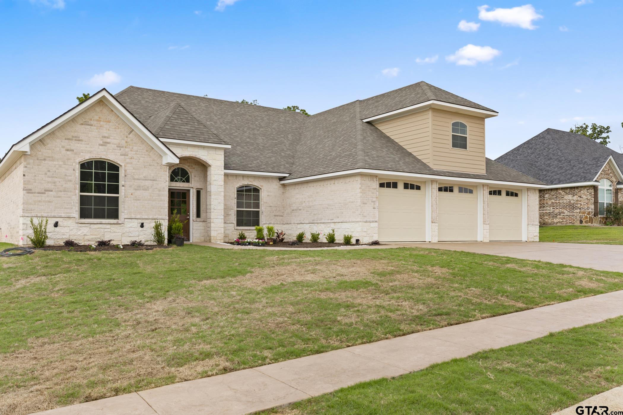 | Welcome to this stunning new construction home located in the desirable Corrigan Trails community in Lindale, Texas. Offering 4 bedrooms, 4 bathrooms, and approximately 3,327 square feet of thoughtfully designed living space, this contemporary one-story home blends comfort, style, and functionality. The exterior showcases an attractive brick and stone façade that sets the tone for the quality found throughout the home. Inside, the spacious layout features a split master bedroom design, creating privacy and a relaxing retreat. A formal dining area and bright breakfast room provide multiple spaces for gathering and entertaining. The modern kitchen is equipped with gas cooking, a pantry, and generous workspace, making it perfect for everyday living or hosting guests. Additional highlights include a dedicated office space and the option for a 5th bedroom, ideal for guests or a home office, giving you added flexibility to suit your lifestyle. Smart home features and a cozy brick fireplace enhance the main living area, creating a warm and inviting atmosphere. The home also offers a three-car front-entry garage and a covered patio perfect for enjoying peaceful East Texas evenings. Sitting on approximately 0.34 acres, the property provides a comfortable balance of outdoor space without the maintenance of larger acreage. Residents of Corrigan Trails enjoy access to neighborhood amenities including a community pool and the added security of a gated entrance. Located within the highly regarded Lindale ISD, this home combines modern construction with the charm and convenience buyers are looking for. | |
